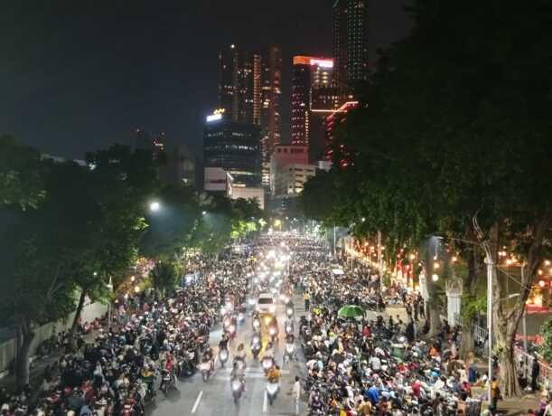 Malam pergantian tahun di Surabaya dengan keramaian warga yang memadati area jalan protokol, salah satunya Jalan Gubernur Suryo. Mereka sudah…