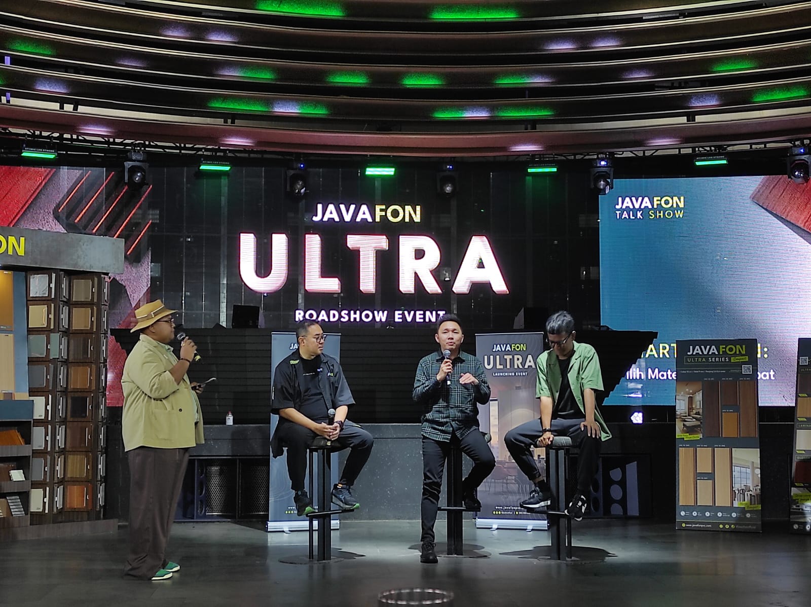 Sebagai bagian dari rangkaian Ultra Roadshow, Javafon juga mengadakan berbagai aktivitas interaktif, seperti Proven & Tested Station dan Moodboard Challenge. Kedua kegiatan ini memungkinkan pengunjung untuk langsung mengeksplorasi performa material Javafon, termasuk uji ketahanan terhadap air dan api, kekuatan serta kelenturan produk, hingga keindahan visual dari tekstur desain yang ditawarkan.