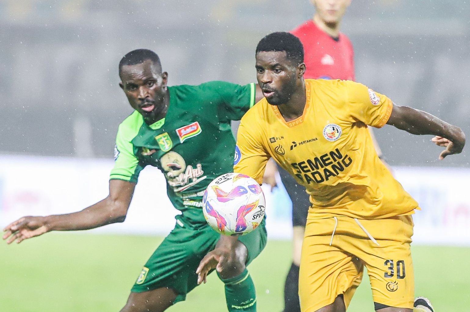 Pemain Semen Padang Alhasan Wakaso (kanan) saat melawan Persebaya di Gelora Bung Tomo, Surabaya (11/5). (Persebaya)
