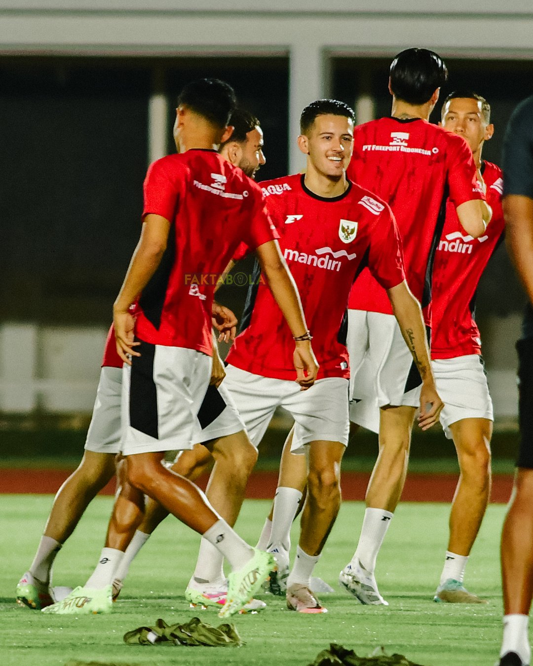 Para pemain timnas Indonesia berlatih di Stadion Madya, Senayan, Jakarta, Selasa malam (3/6). (x_@FaktaBola)