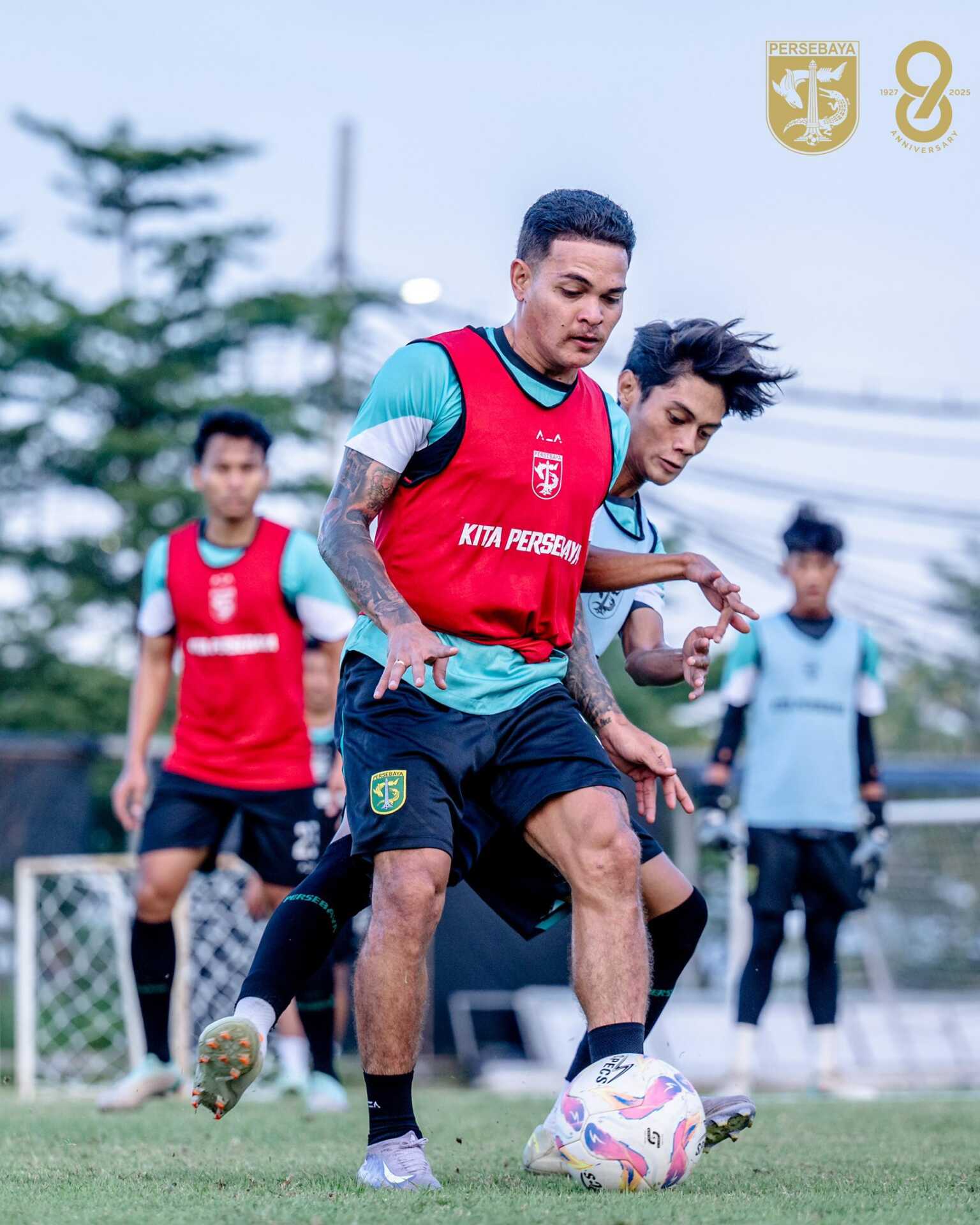 Para pemain persebaya berlatih di Lapangan ABC, Gelora Bung Tomo, Surabaya, 24 Juni lalu. (PersebayaUpdate)