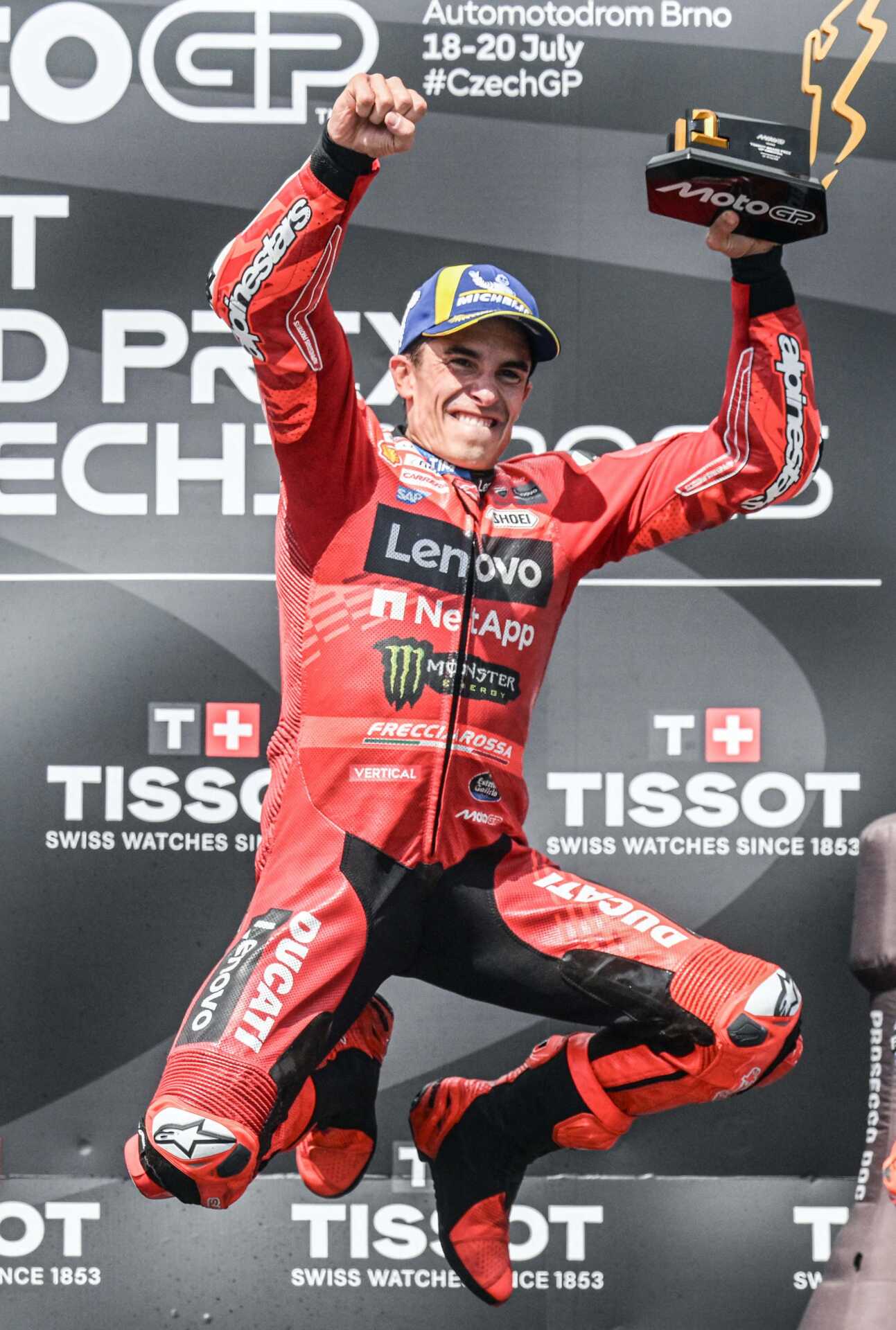 METROTODAY, BRNO – Pembalap Ducati Marc Marquez mencatatkan sejarah sebagai rider Ducati pertama yang mampu mendapatkan lima kemenangan beruntun dalam satu musim. Dia meraihnya dengan finis terdepan dalam balapan utama MotoGP Republik Ceko di Sirkuit Brno, Minggu (20/7).
