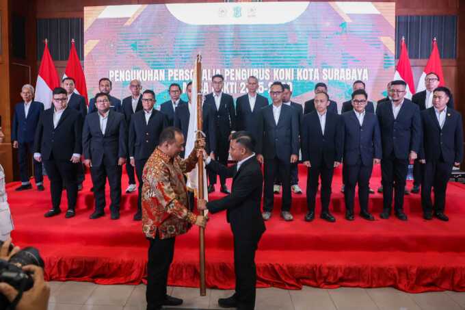 Pengukuhan ini dilakukan langsung oleh Ketua KONI Jawa Timur, Muhammad Nabil, yang disaksikan oleh Wali Kota Surabaya, Eri Cahyadi.