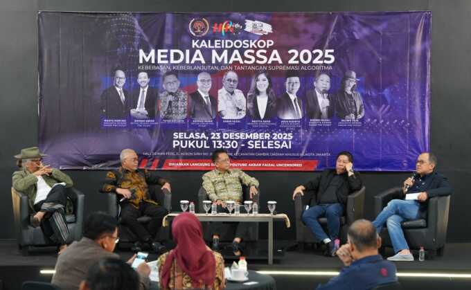 METROTODAY, JAKARTA – Kebebasan pers dan keberlanjutan media menghadapi supremasi algoritma menjadi isu utama yang diperbincangkan oleh para pakar dan pelaku media dalam diskusi “Kaleidoskop Media Massa 2025” di Aula Dewan Pers, Jalan Kebon Sirih, Jakarta, Selasa (23/12).