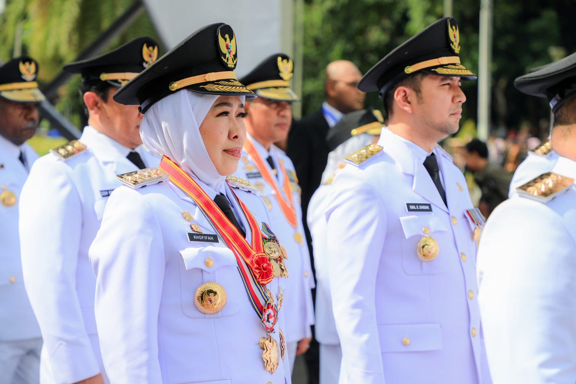 Gubernur Khofifah dan Wagub Emil Elestianto Dardak saat pelantikan di Istana Negara Jakarta, Kamis (20/2).