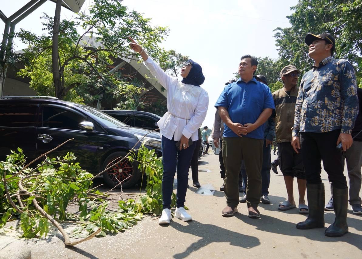 Bupati Sidoarjo Subandi dan Wakil Bupati Mimik Idayana mendatangi jalan akses ke Terminal 2 Bandara Internasional Juanda. Masih ada bekas pohon tumbang. (Foto: Dinas Kominfo Sidoarjo)