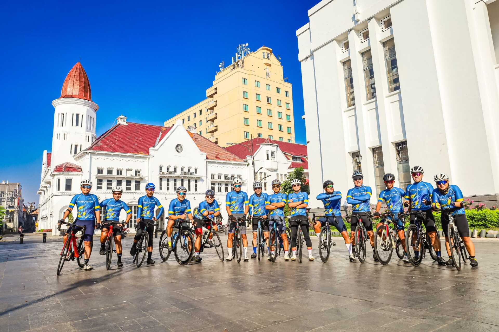 SERU: Pedes Cycling Community merayakan hari jadi ke-4 dengan gowes melintasi sejumlah ikon Surabaya. DITE SURENDRA/METROTODAY.ID