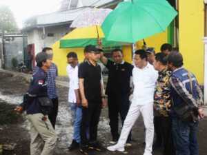 METRO TODAY, SIDOARJO – Hujan turun sangat deras saat Bupati Sidoarjo Subandi mengecek pemasangan U-ditch untuk saluran proyek betonisasi di Jalan Kureksari, Kecamatan Waru. Ajudan pun cepat-cepat mengambil payung untuk melindungi Bupati Subandi dan Kepala Dinas PU Bina Marga dan SDA Dwi Eko Saptono. Keduanya tetap di jalanan.