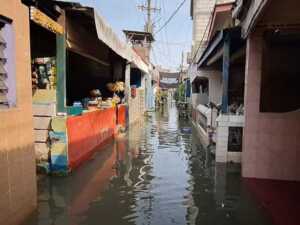 Fenomena ini diperparah oleh penurunan daratan ditambah curah hujan yang tinggi semakin mempermudah air laut masuk ke wilayah pesisir.