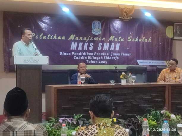 ”Kalau niat ikut memperbaiki akhlak, ikhlas menyampaikan ilmu yang bermanfaat. Jadi, dalam konteks mendidik semua pihak harus ikut terlibat,” ungkap Kiswanto saat membuka pelatihan manajemen mutu sekolah MKKS SMAN Dindik Provinsi Jatim di salah satu hotel di Malang, Jum’at (19/12/2025).