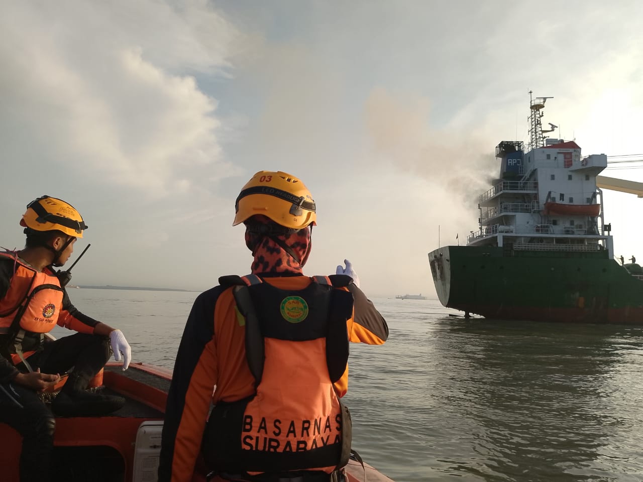 Kapal KN SAR 249 Permadi dari Kantor Pencarian dan Pertolongan (SAR) Surabaya tiba di lokasi sekitar pukul 06.00 WIB setelah diberangkatkan dari Dermaga Distrik Navigasi Tanjung Perak menggunakan RIB Basarnas.
