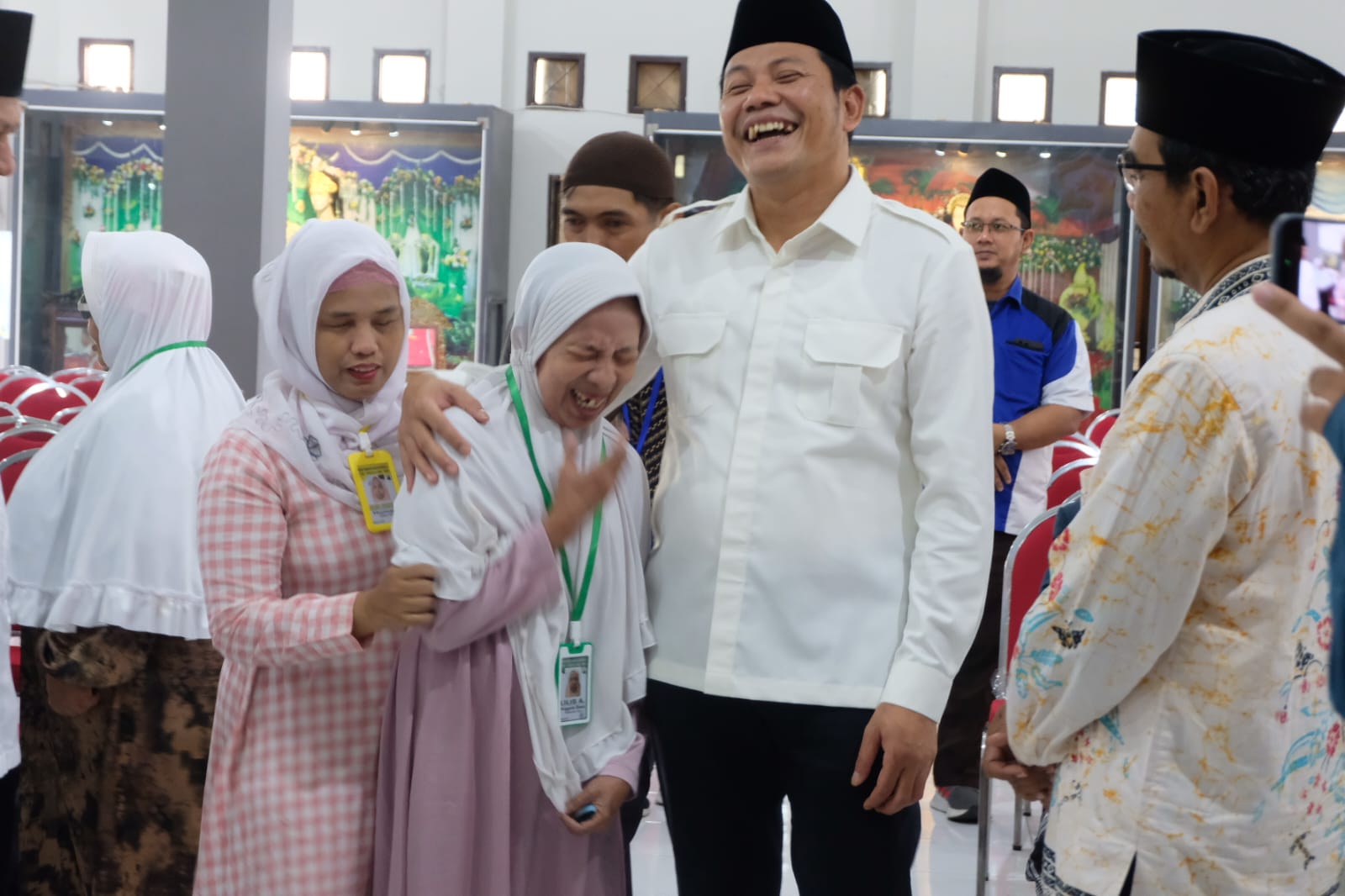 Bupati Sidoarjo Subandi berfoto bersama setelah penyerahan bantuan kepada para penyandang tunanetra peserta Pondok Ramadhan yang diadakan ITMI Sidoarjo Minggu pagi (16 Maret 2025). (Foto: METROTODAY)