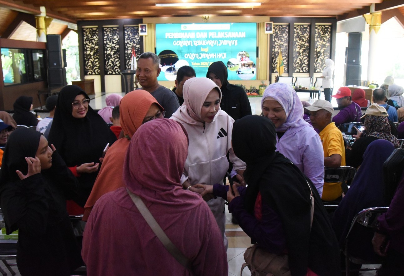 Wakil Bupati Sidoarjo Mimik Idayana berbicang dengan para calon jamaah haji yang mengikuti kegiata pembinaan di Pendopo Delta Wibawa Sidoarjo. (Foto: Kominfo Sidoarjo)