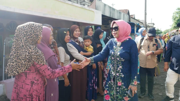 Wakil Bupati Sidoarjo Mimik Idayana menyapa warga Dusun Kepetingan, Desa Sawohan, Kecamatan Buduran, dalam kunjungannya pada Jumat (24/4/2026). (Dinas Kominfo Sidoarjo)