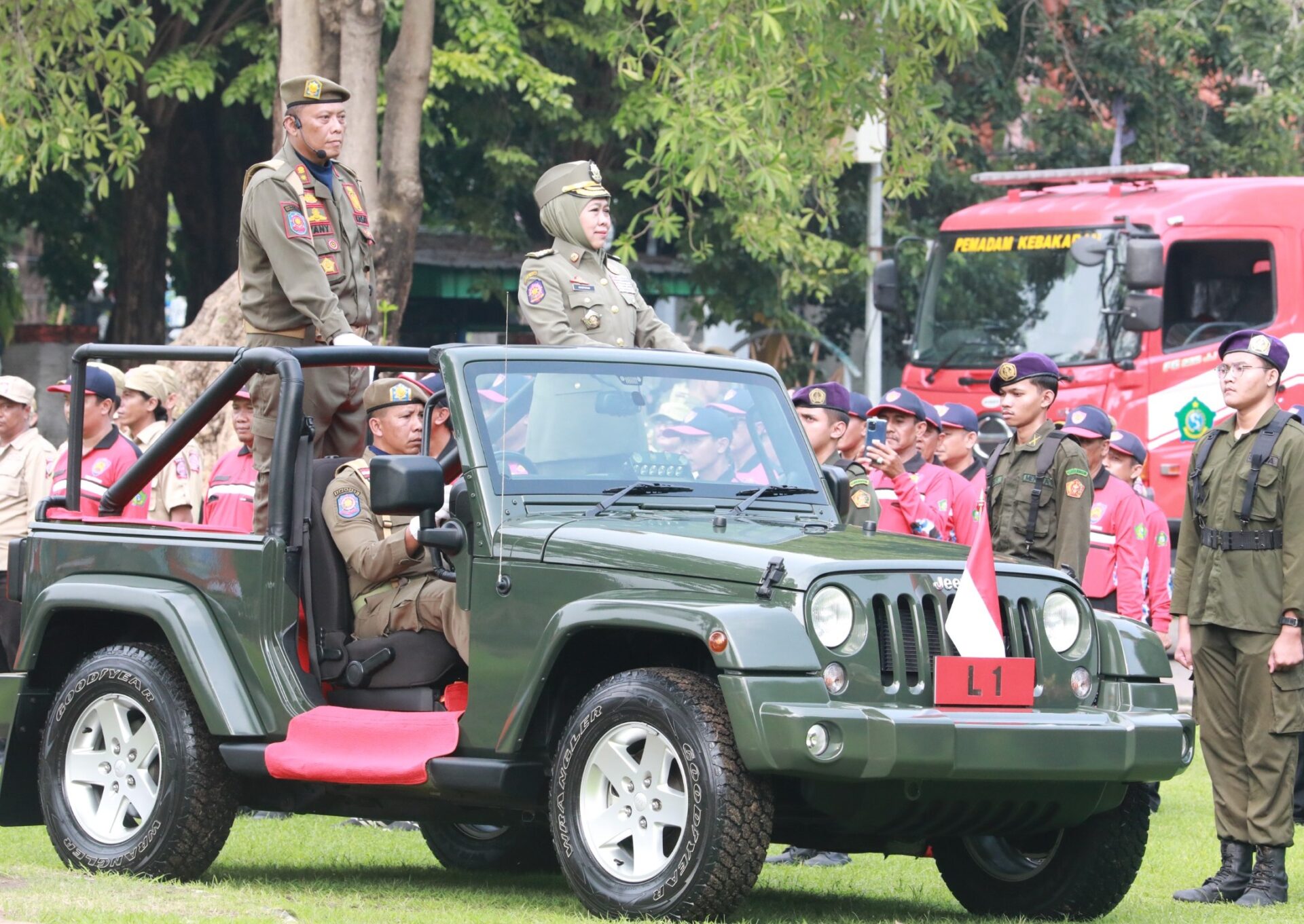 Apel kesiapsiagaan ini dibuka Gubernur Khofifah. Dalam sambutannya, Gubernur Khofifah memberikan apresiasi tinggi kepada seluruh petugas lintas instansi. Menurut dia, sinergi antara Damkar, Satpol PP, Linmas, relawan, TNI, dan Polri telah membuktikan keberhasilan dalam melindungi masyarakat Jawa Timur.