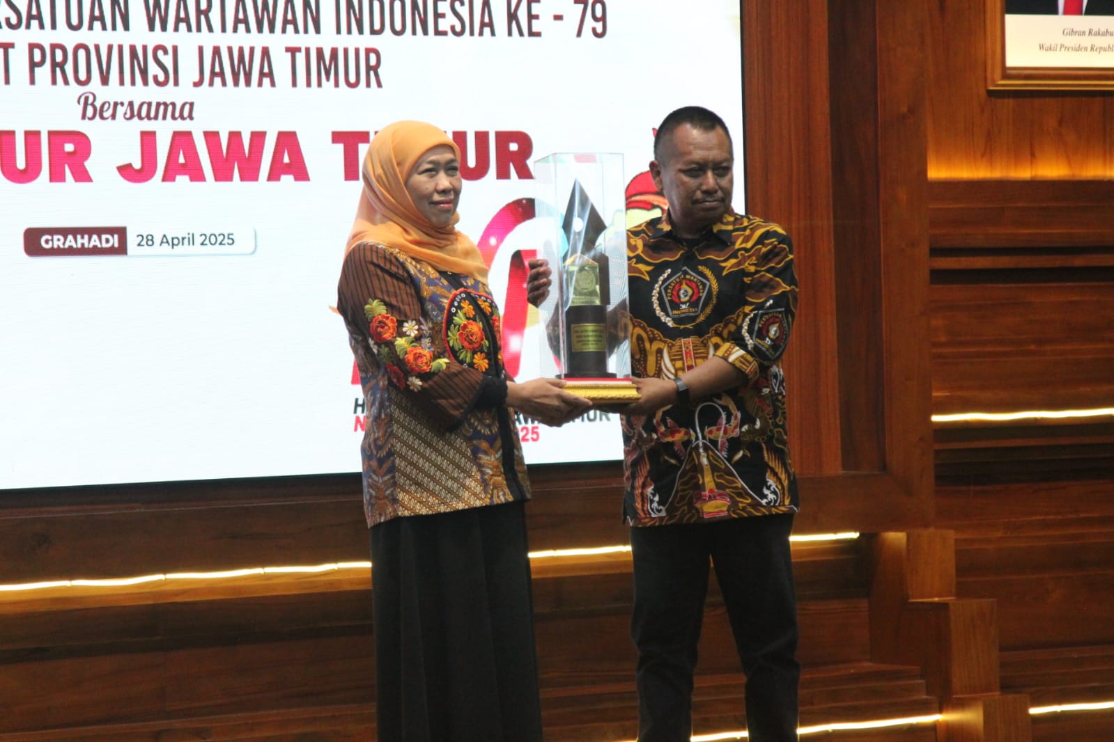 METROTODAY, SURABAYA – Gubernur Jawa Timur Khofifah Indar Parawansa menghadiri Puncak Hari Pers Nasional (HPN) 2025 dan Hari Ulang Tahun ke-79 PWI tingkat Jawa Timur yang digelar di Gedung Negara Grahadi, Senin (28/4).