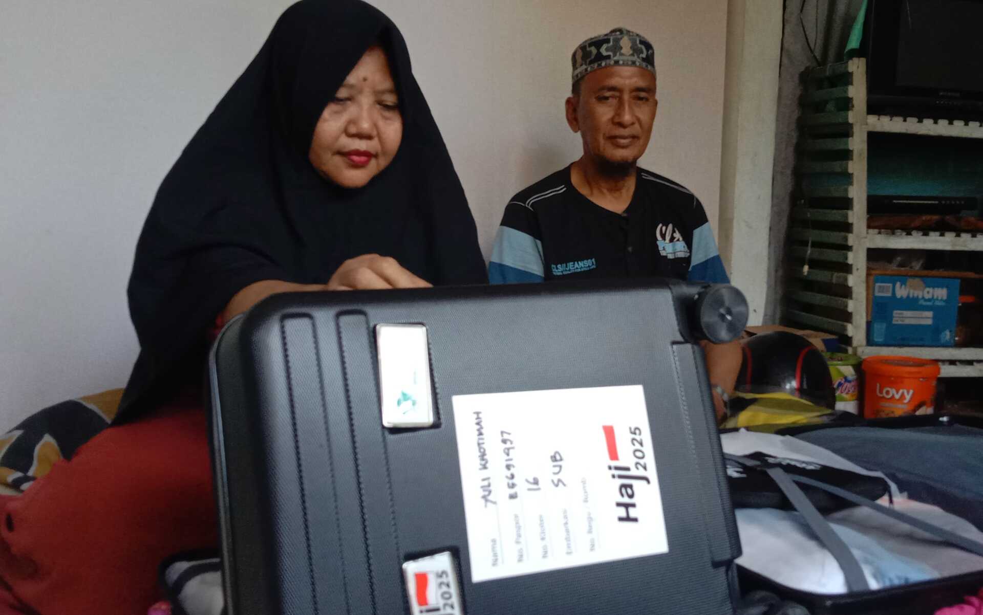 Pasutri Rochmad Munandar dan Yuli Khotimah mempersiapkan berangkat ke tanah suci, Rabu besok (7/5). (Foto: Istimewa)