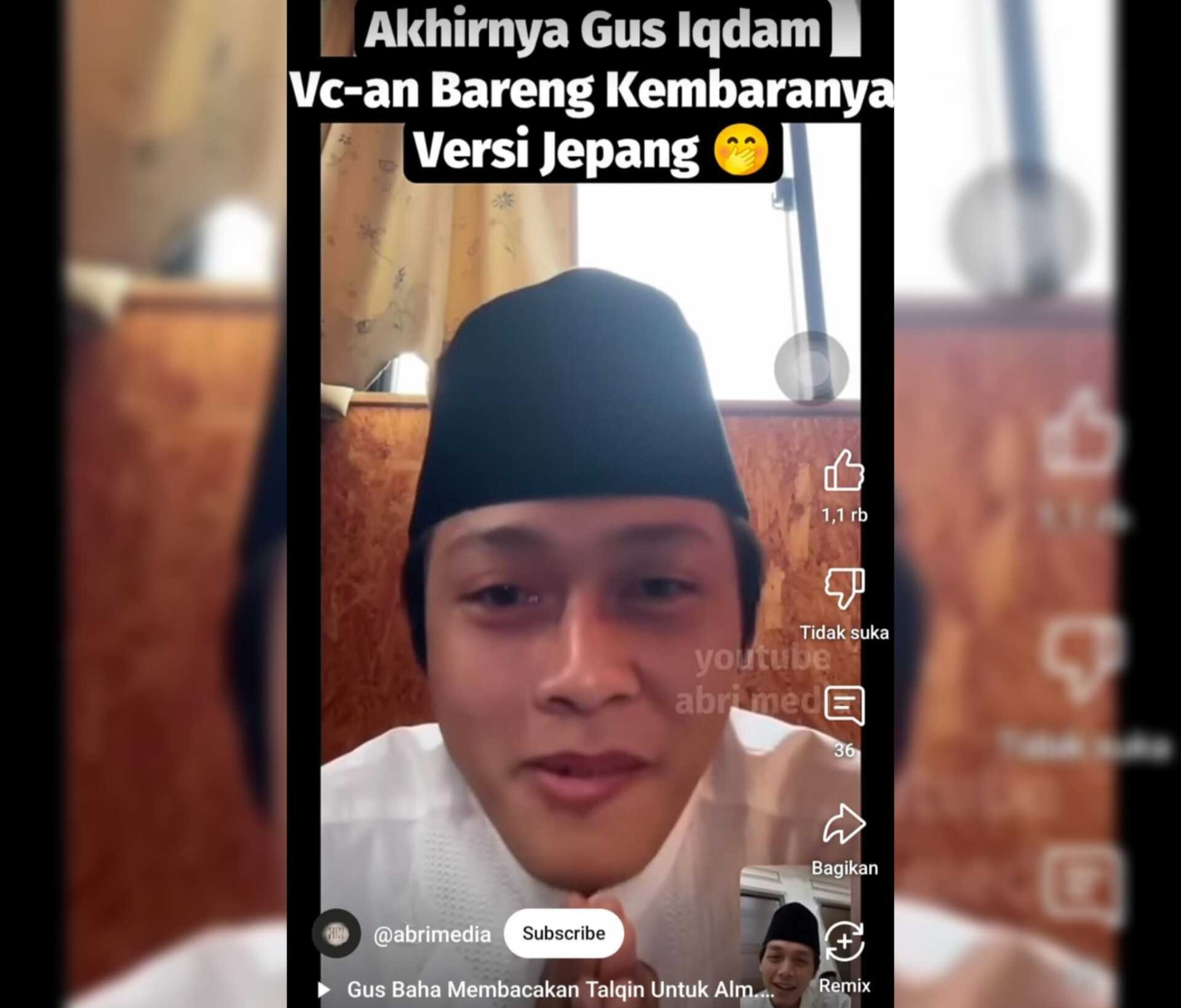 “Ternyata aku duwe kembaran di Jepang. Plek podho,” kata Gus Iqdam melalui sebuah potongan video yang beredar.