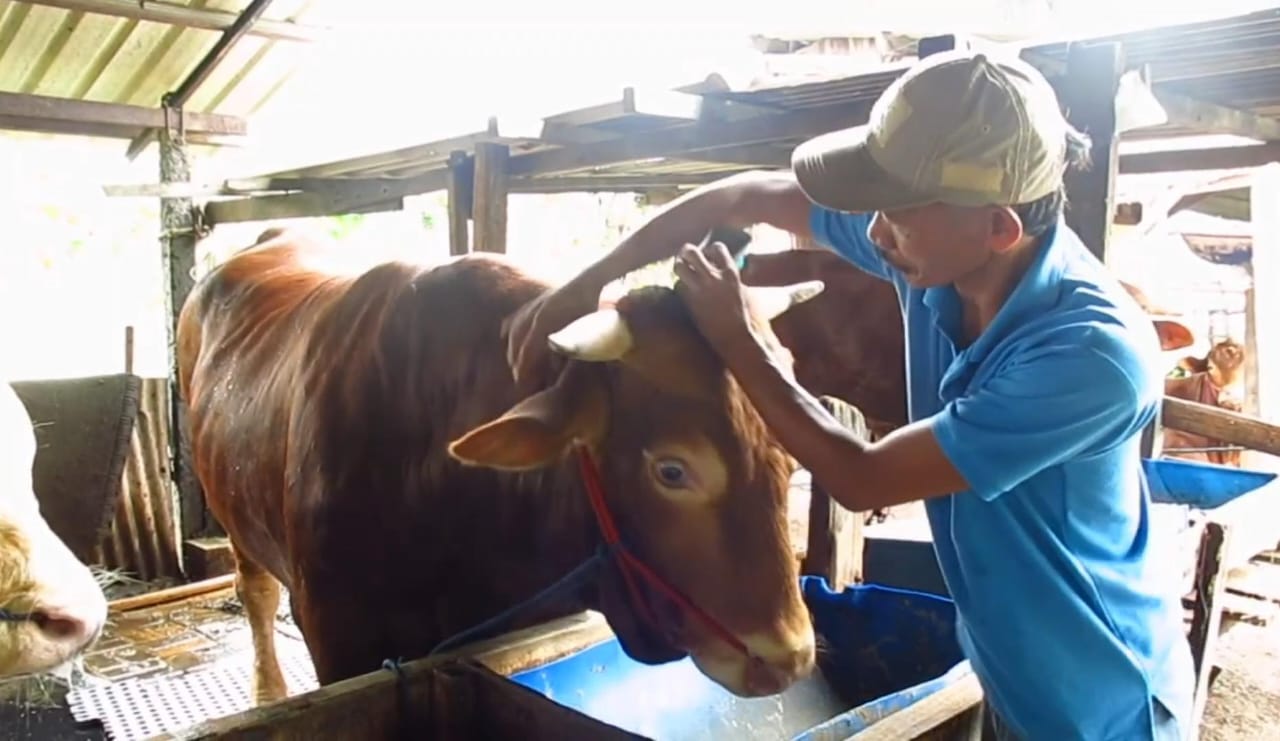 “Saya setiap hari membersihkan kandang, memandikan, dan memijat sapi-sapi saya. Pijatan ini penting agar ototnya tidak kaku, sehingga sapi bisa tumbuh dengan baik dan tetap sehat,” jelasnya, Senin (2/6).