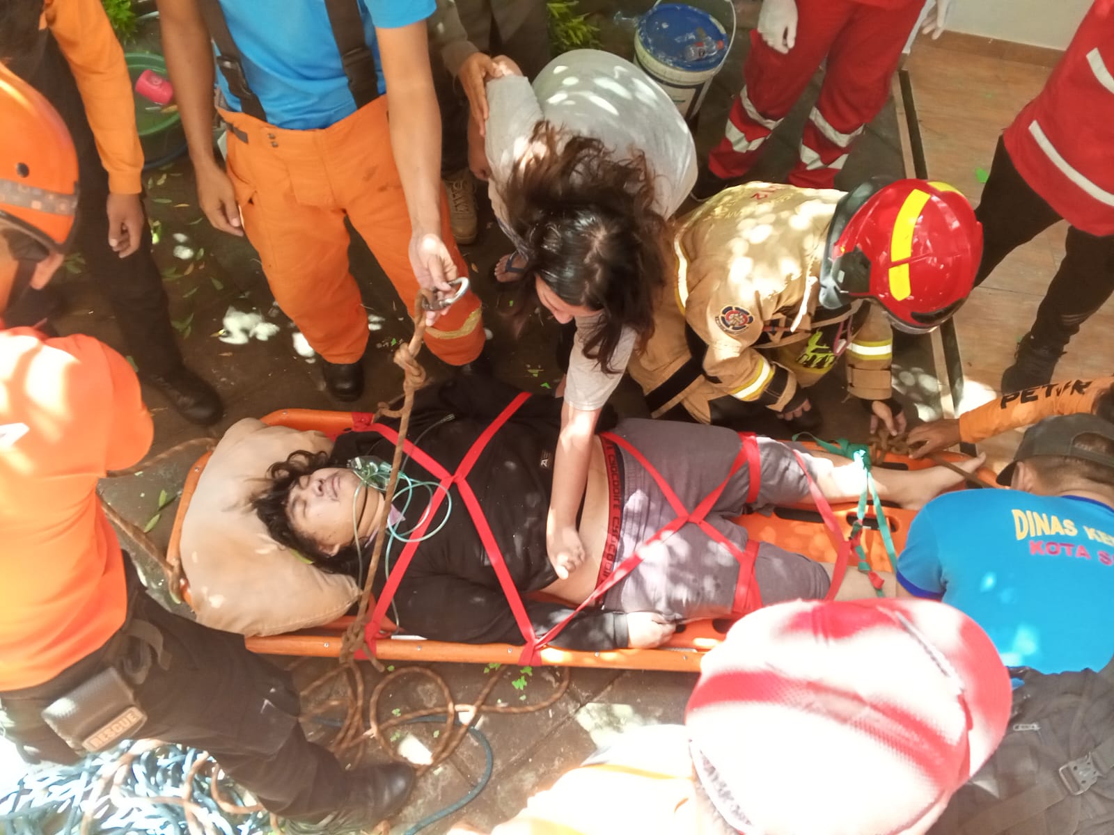 Tim penyelamat langsung memberikan pertolongan pertama (RJP) dan mengevakuasi Yehezkiel secara manual dari lantai dua.