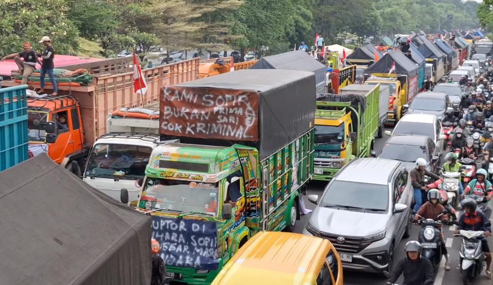 Ratusan truk memblokir jalan dan menyuarakan protes mereka terhadap kebijakan yang dianggap tidak berpihak kepada para sopir.