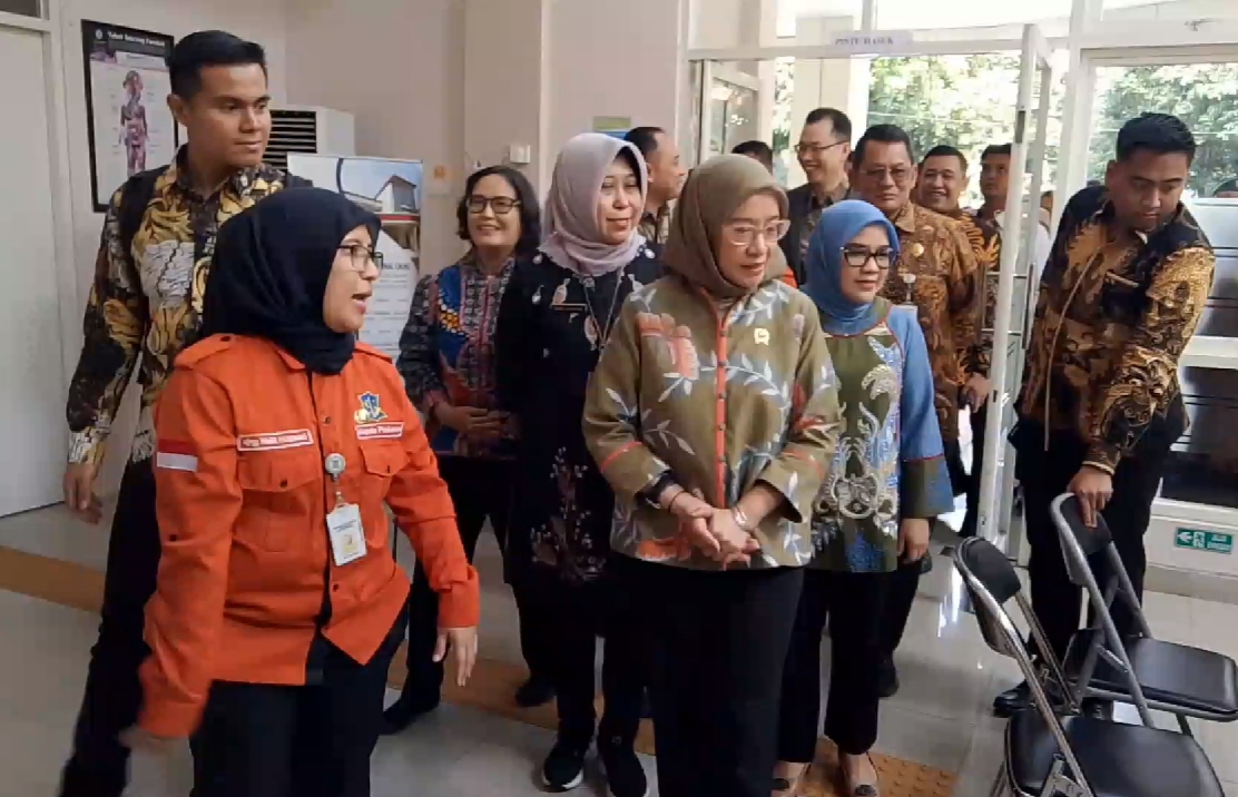 Didampingi Istri Wali Kota Surabaya Rini Indriyani, serta Kadinkes Nanik Sukristina, Rini meninjau langsung pelayanan di Puskesmas Tambakrejo.