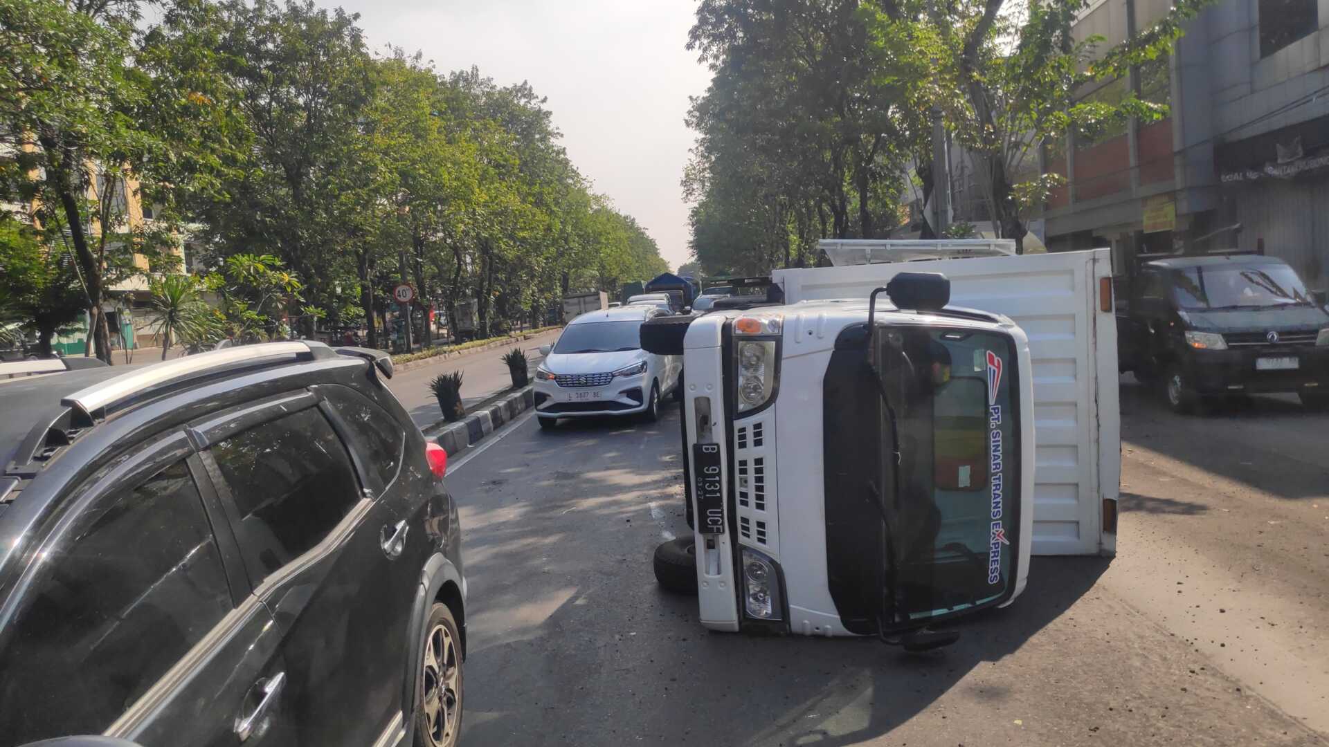 Setelah kosong, truk yang mengalami kerusakan cukup serius dengan bodi penyok, dua pintu belakang patah, dan rangka rusak, baru dievakuasi dengan hati-hati.