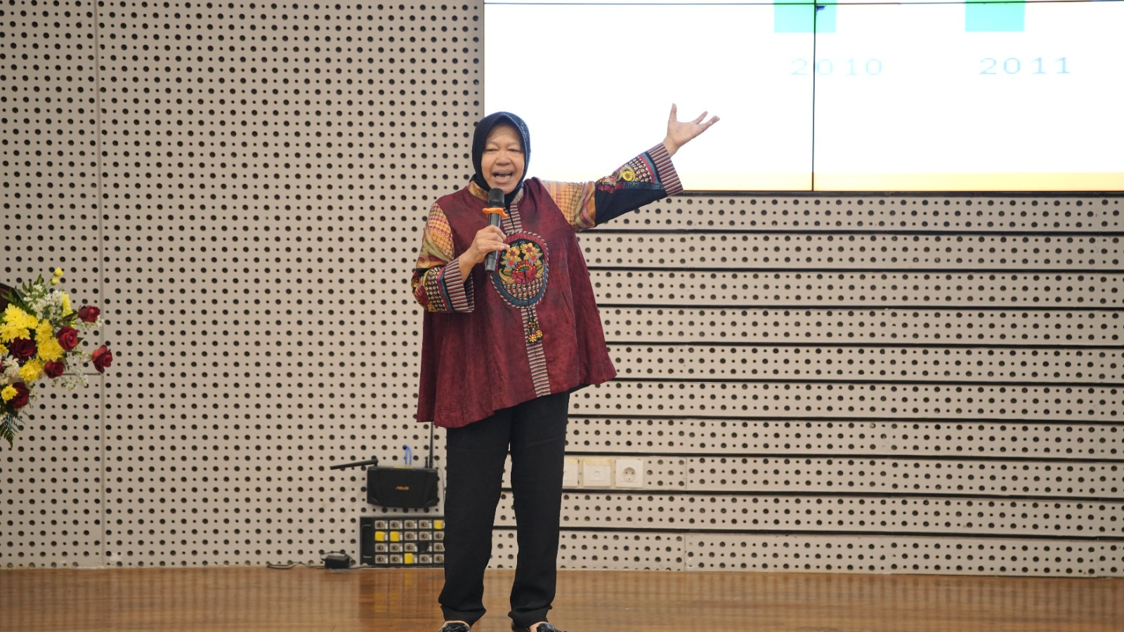 Menteri Sosial RI periode 2020 – 2024 Dr (HC) Ir Tri Rismaharini MT saat menjadi pembicara di Sekolah Kepemimpinan ITS 2025. (Foto: Istimewa)