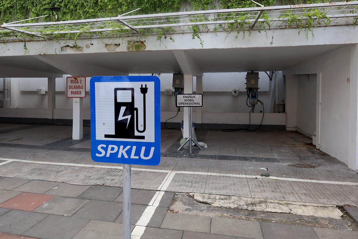 Stasiun pengisian bahan bakar listrik untuk kendaraan ramah lingkungan di kompleks Balai Kota Surabaya. (Foto: Istimewa)