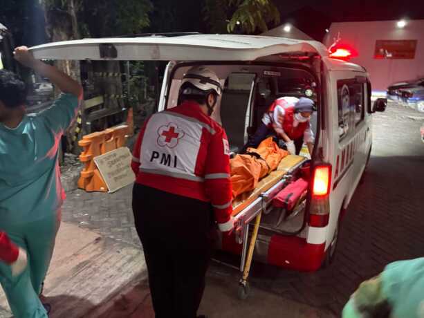Petugas melakukan pengecekan dan penanganan awal kepada korban bersama PMI.