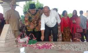 Tabur bunga di makam WR Supratman di kompleks pemakaman Kenjeran Surabaya. (Foto: Istimewa)