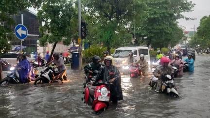Hujan dengan intensitas tinggi yang menyebabkan banjir sejak Rabu siang hingga malam hari menyebabkan kemacetan cukup panjang dan hampir tidak bisa bergerak di kawasan mulai Jalan Balongsari, Sukomanunggal, Simo Kalangan, hingga Banyu Urip Surabaya.