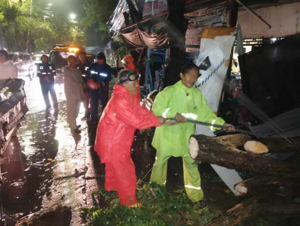 “Kami langsung melakukan pemangkasan dahan pohon yang patah agar tidak membahayakan pengguna jalan dan warga sekitar. Untuk sementara, bengkel mobil tidak dapat beroperasi karena masih dalam proses pembersihan,” ujar Zaenal petugas BPBD