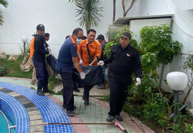 Petugas posko terpadu timur M. Ibnu mengatakan setiba di lokasi menemukan korban sudah dalam keadaan tergeletak dan sudah tidak bernyawa di dalam kolam renang.