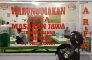 Di depan warung sudah dipasang banner berwarna hijau bertuliskan putih dengan ajakan makan bagi mahasiswa dari Sumut, Sumbar, dan Aceh, yang belum mendapatkan kiriman dari keluarga.