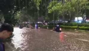 Jalan Simo Kalangan Surabaya Terendam Banjir, Puluhan Motor Mogok