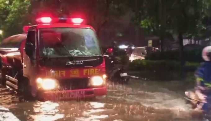 Untuk menanggapi kondisi itu,Petugas Dinas Pemadam Kebakaran dan Penyelamatan (DPKP) mengerahkan unit mobil tangki untuk menyedot air di sepanjang jalan tersebut. Meskipun ada upaya penanganan, kemacetan panjang tak terhindarkan akibat genangan air yang memblokir lalu lintas. (ahm)