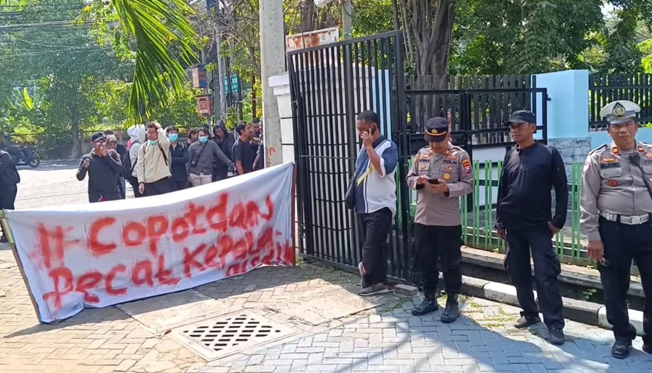Puluhan mahasiswa yang tergabung dalam Solidaritas Satu Cita menggelar aksi unjuk rasa di depan Kantor Dinas Pendidikan (Dispendik) Kota Surabaya…
