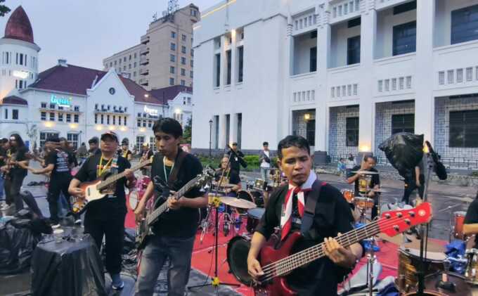 Musik rock menggema di Internatio Building, Kota Lama, Surabaya, Minggu (9/11). Ratusan musisi dari seluruh Surabaya Raya berkumpul dalam ajang…