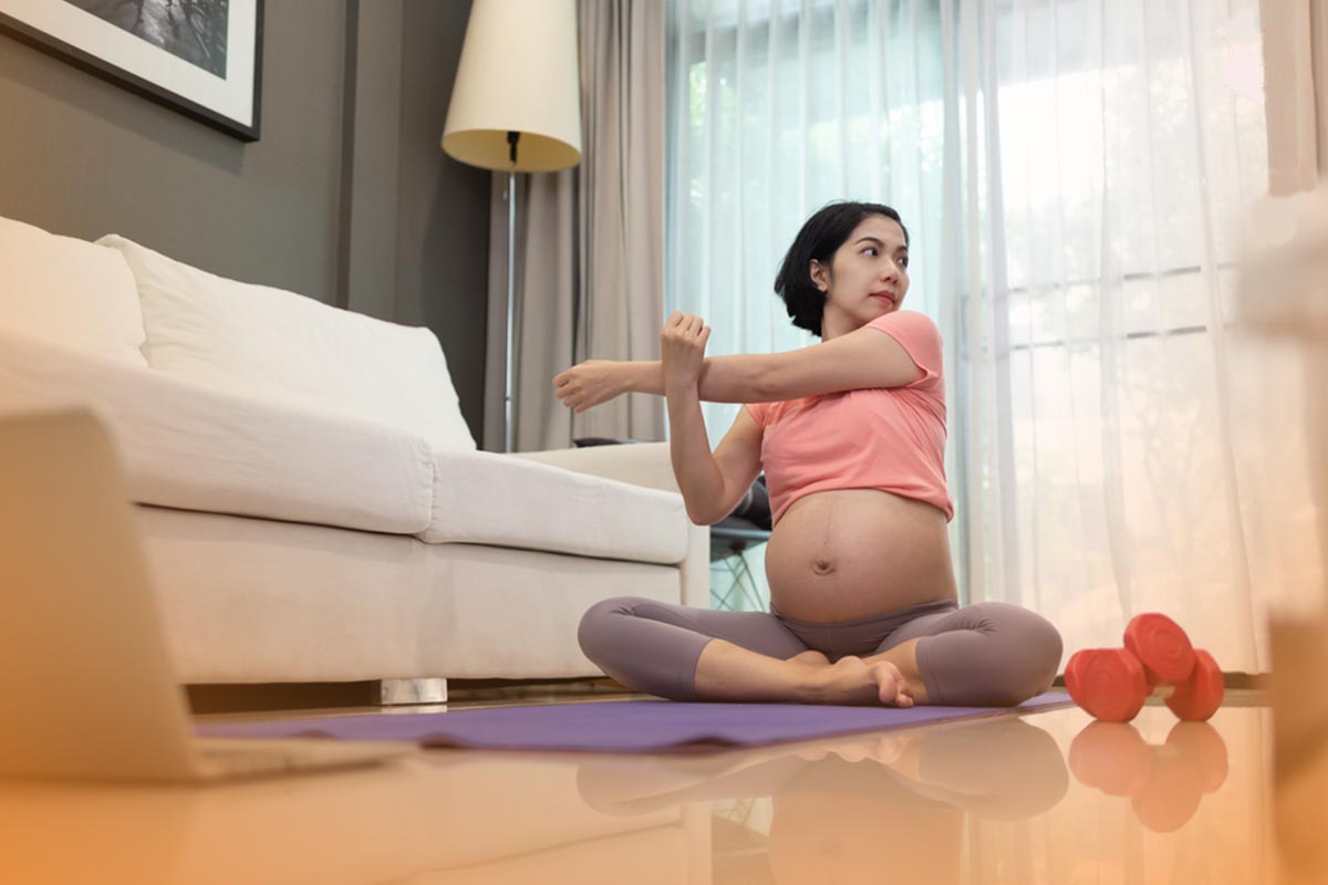 Ilustrasi ibu hamil melakukan olahraga di rumah. (Foto: Shutterstock)